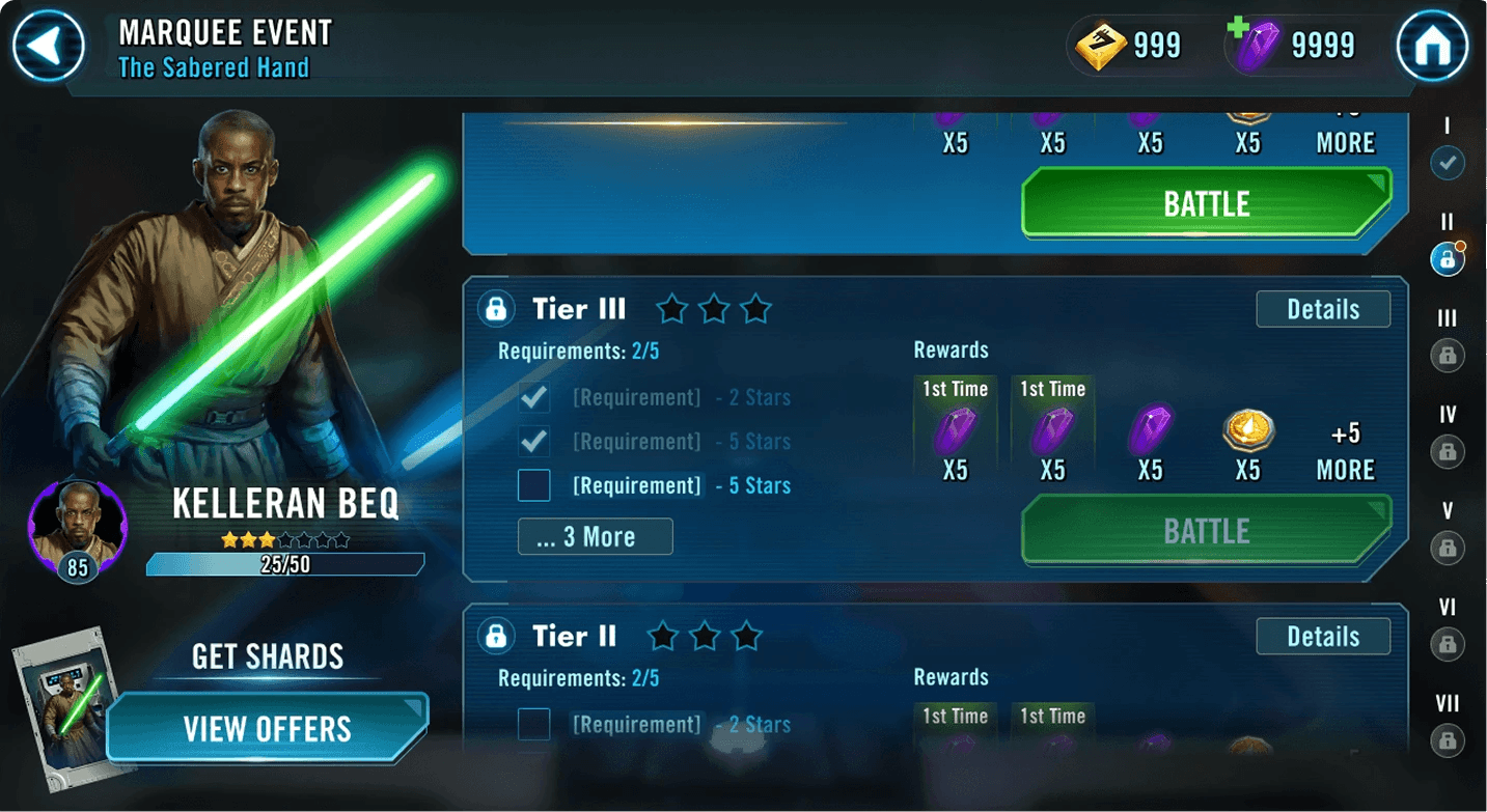 I rebuilt Marquee as a single, cohesive flow where players never lose context. Character representation sits directly in the event UI, supported by clearly labeled, high-contrast UI elements that make progress and requirements obvious at a glance. Unlocking, upgrading, and promoting all happen in one place with immediate feedback. Rewards surface early, tier states are unmistakable, and store access is integrated into the loop so players can buy packs and bundles at the moment they are most motivated.