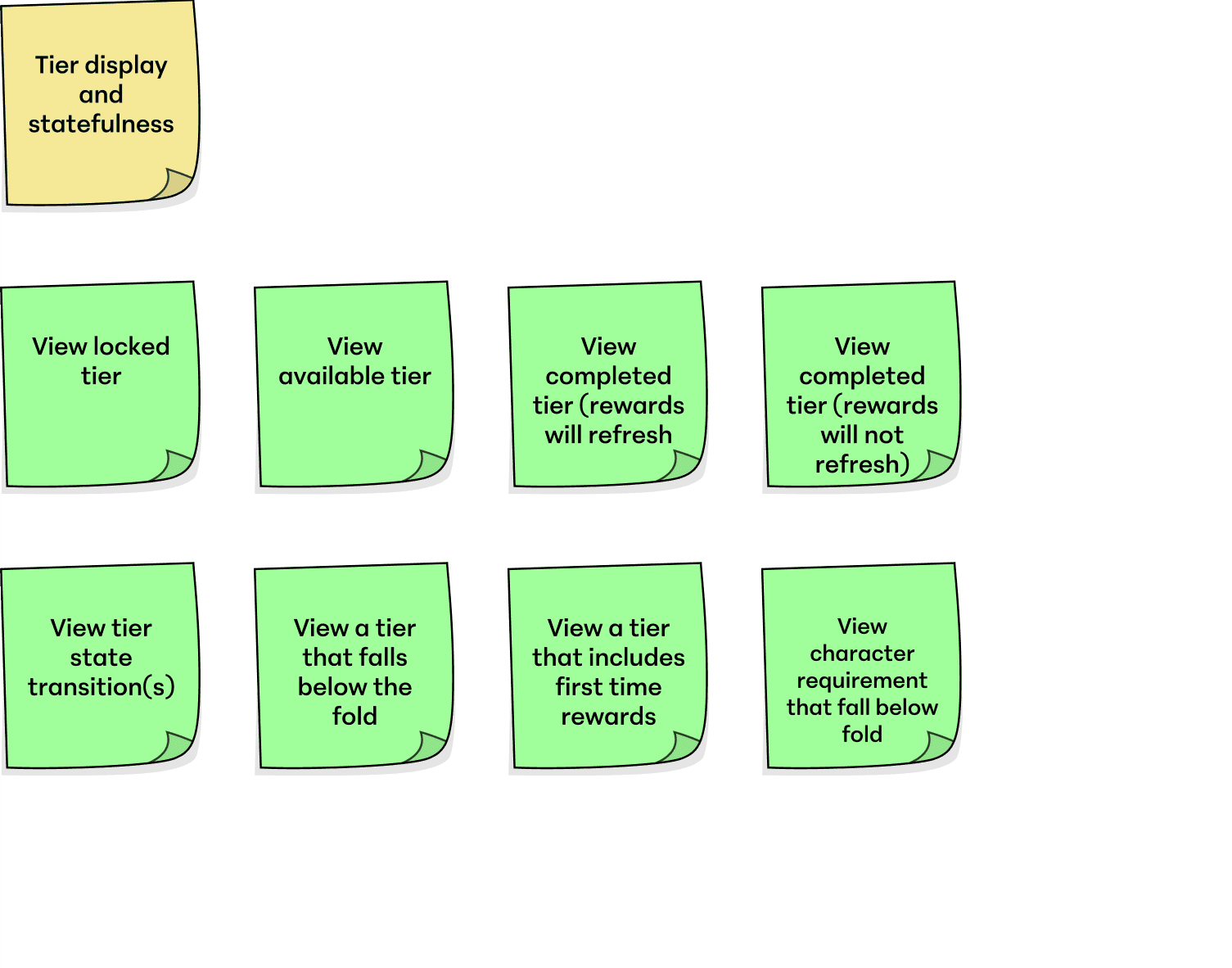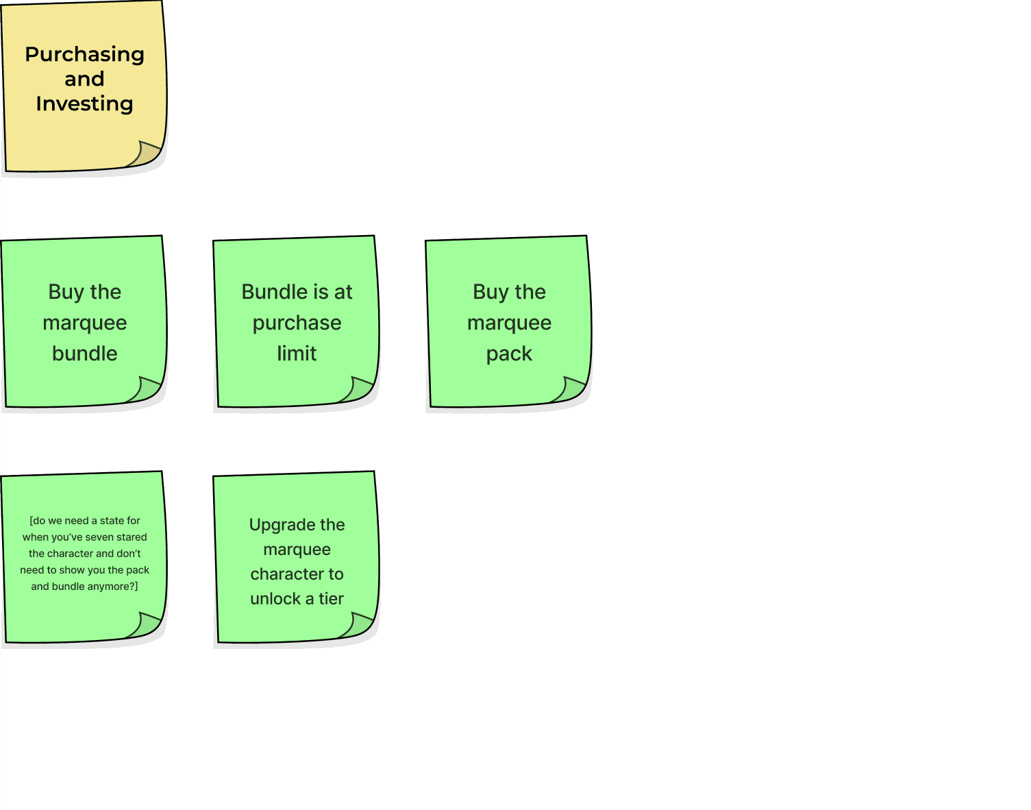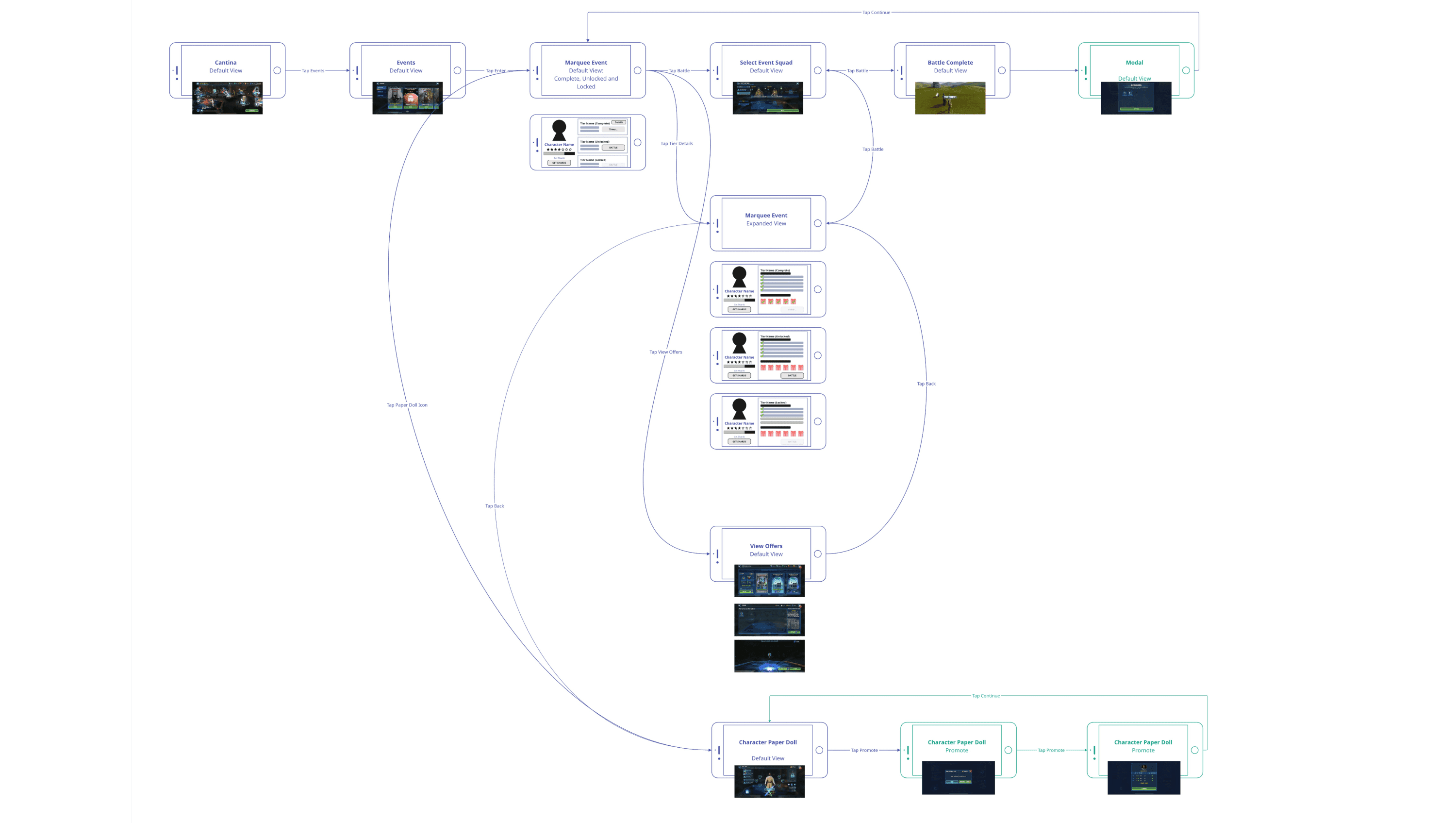 In pre-production, I mapped the core actions players take during a Marquee event using the same systematic process I apply to all feature work. For this redesign, two actions emerged as the anchors. Character investment drives long-term engagement, and progress tracking helps players understand where they are and what unlocks next. These became the foundation for the Marquee UI.